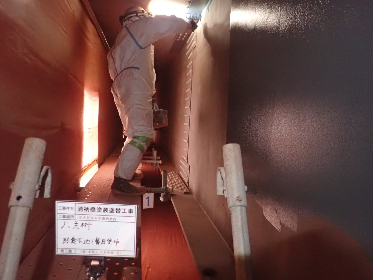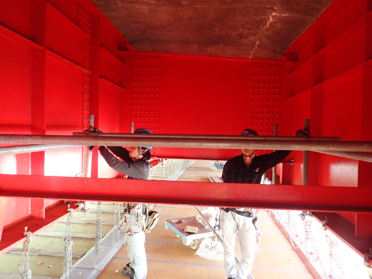 2025年12月19日時点での進捗率は65%65%です。 着手前から防食下地1層目塗完了までの施工写真です。